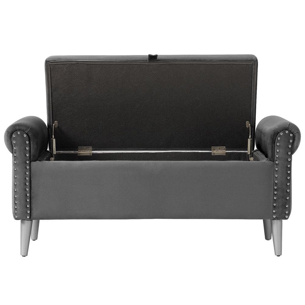 The plush velvet fabric covering adds a rich, soft touch to its appearance, creating a refined contemporary look that elevates your decor. The elegant rolled arms lend a luxurious and classic charm, making it suitable for a variety of interior styles. The silver wood legs not only contribute to the aesthetic but are also removable, making it easy to move the bench around your home or place it flat on the floor if preferred.